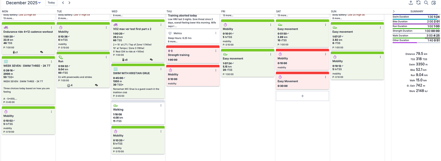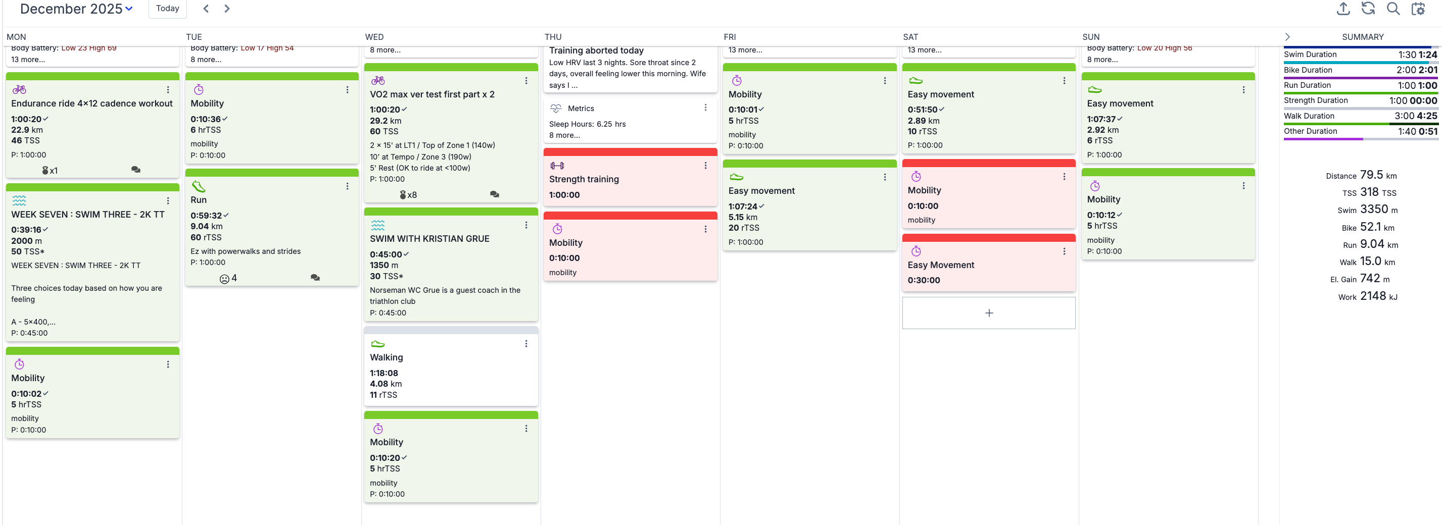 I wrote a note on the Training Peaks. Suddenly, all the sessions disappeared from the plan. Instead, “a 30 min easy movement” sessions appeared. Gordo removed the sessions.